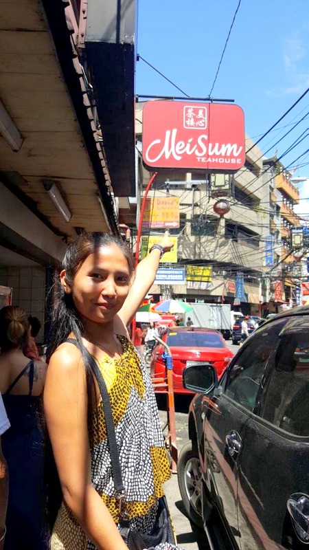 Mei Sum Tea House is located on Ongpin Street which is the main street of Chinatown in Manila. Here, you can find all Chinese of course, and Gold Jewellery Shops.