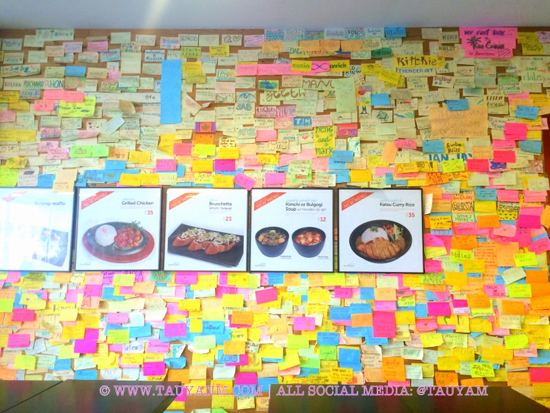 The place is full of Post-It Paper all over! It is like having a post-it war inside but it was cute and very colourful! I enjoyed reading some of the post-it messages and hard to believe but I didn’t write anything haha but will try next time we visit there for more foods! Of course K-Pop music is present where you can watch their music videos while waiting for your food or just enjoy it while eating your foods. I believe that WIFI is available in the place as well, so take some snaps and tag them! =)