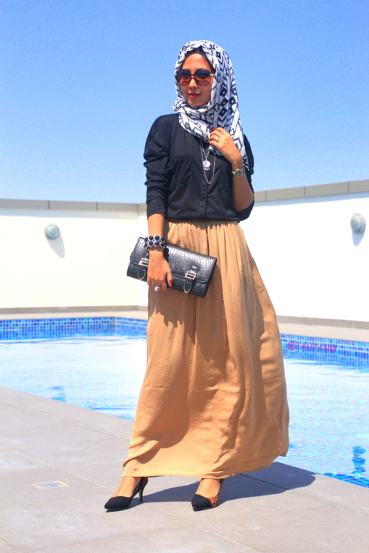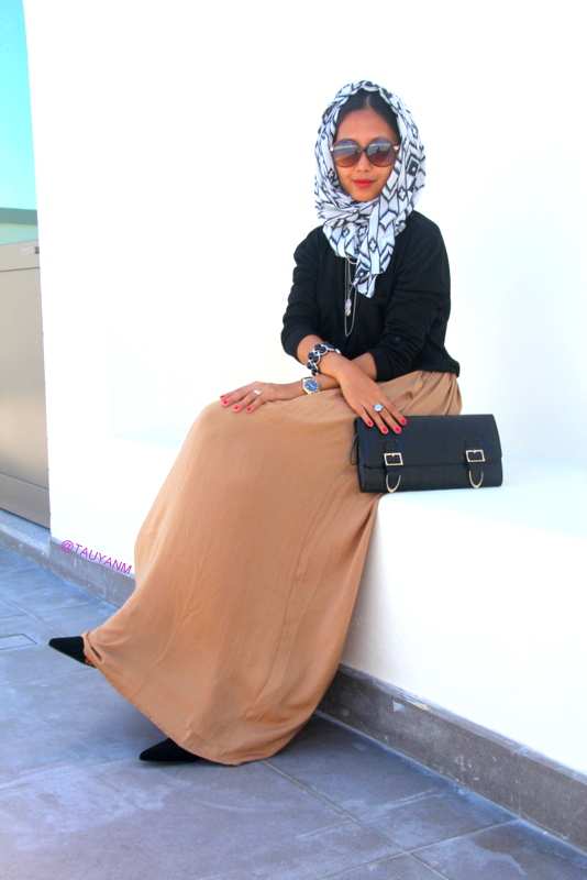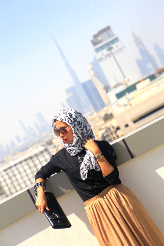 Immersing myself in the culture of Dubai … I headed down to Max Fashion to secure a range of outfits that adds style and demonstrate that elegance and conservativeness can coexist to bring a look that would appeal to any modern Dubai woman. For the OOTD look I chose a long sleeve black top, matched with a Bronze/Brown flowing skirt, making a perfect blend if I was against a Desert backdrop and ankle length to give it that conservative look.